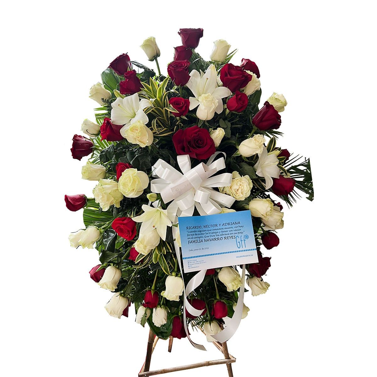 Arreglo floral tipo fúnebre con flores surtidas (Puede tener cambios según disponibilidad)