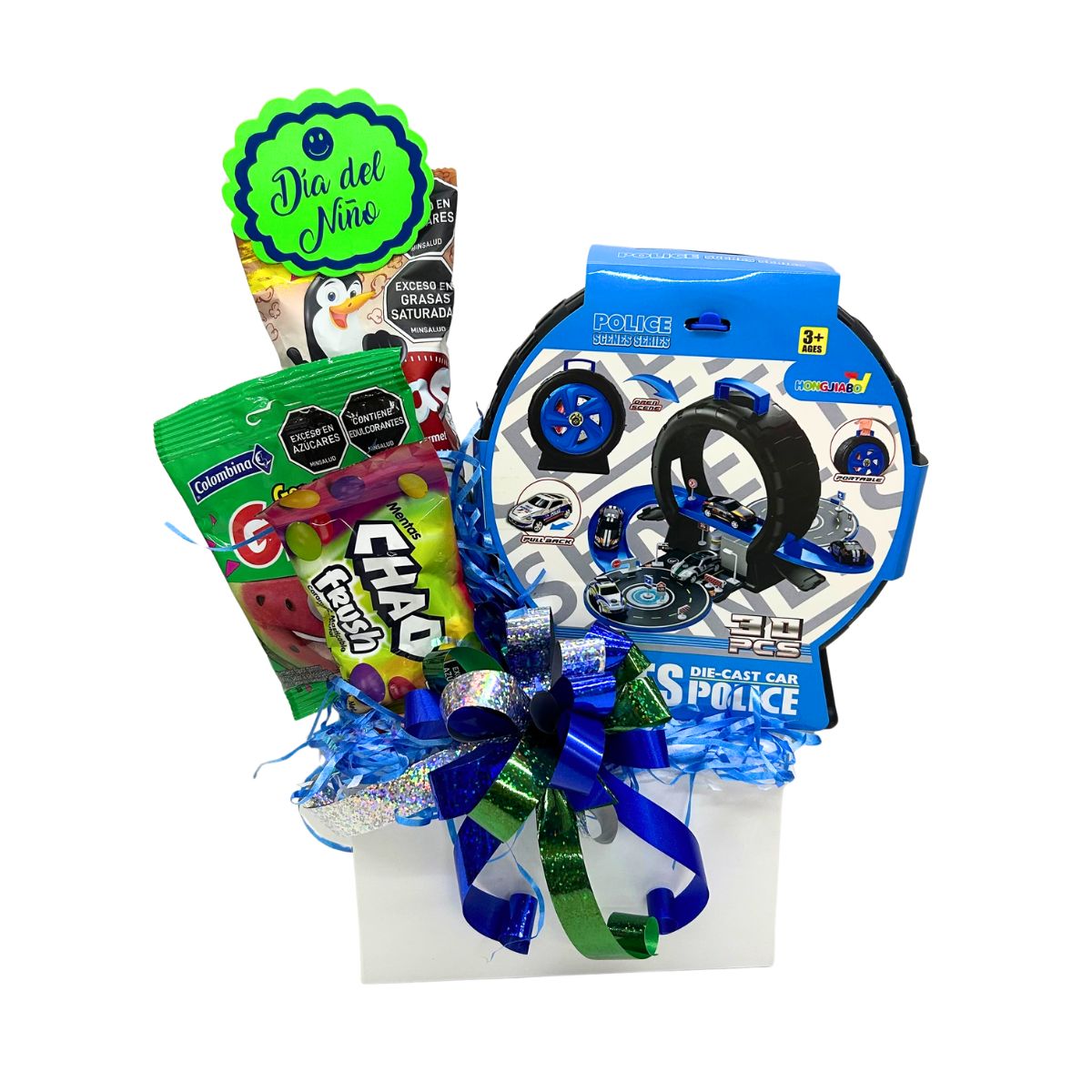 Ancheta con pista de carros, gomas, dulces y Crispetas (Puede variar según la disponibilidad de los productos)