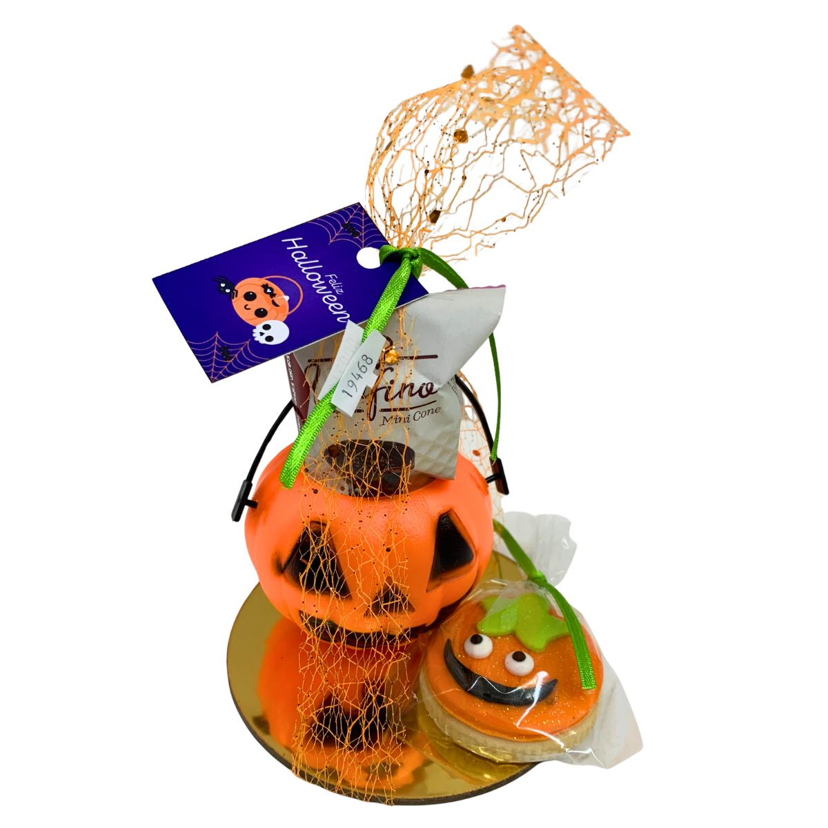 Detallle de calabaza mini con chocolate y galleta (Puede variar según la disponibilidad de productos)