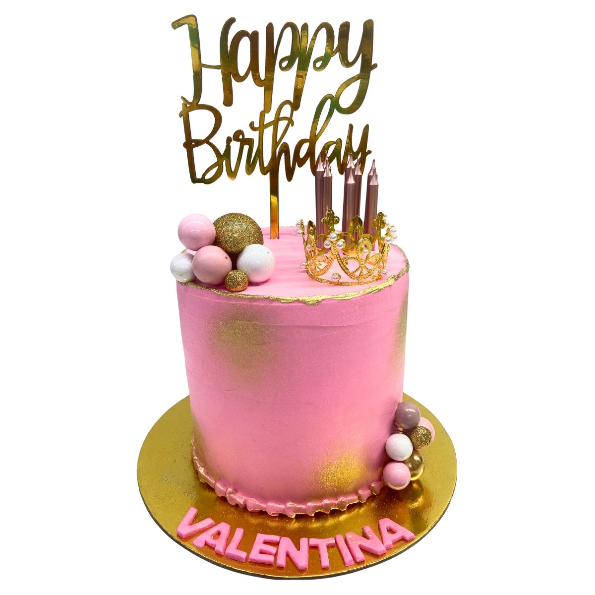 Torta sabor naranja con relleno de arequipe, bolitas decorativas, topper y corona – Equivale a 20 personas